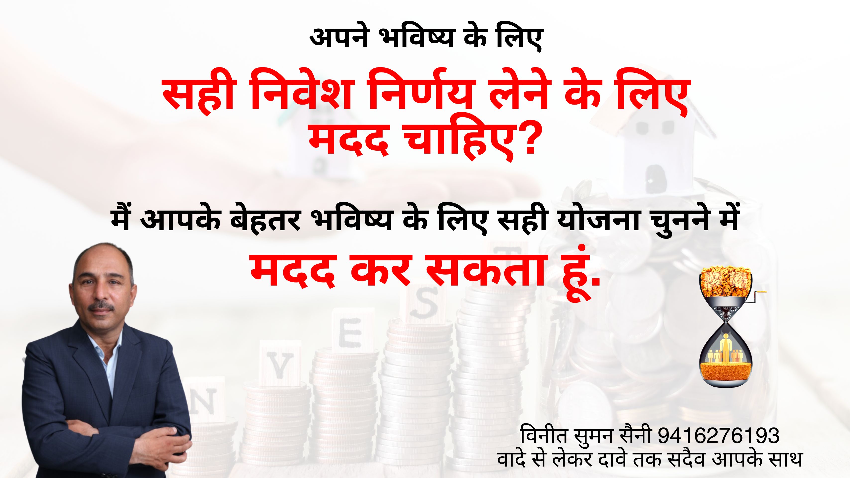 I am Vineet Suman Saini. We specialize in Wealth Management Services and Insurance Consultancy services for all types of Insurances such as Pension Plans, Health Insurance, Term Plans, Children's education, Marriage, Securing future, Financial Planning, etc.